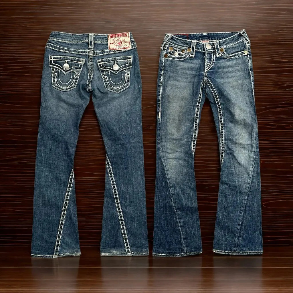 2000s Gothic Vintage Buddha Embroidery Jeans Mens Womens Y2k Streetwear Hip Hop Pocket Baggy Jeans Low Waist Wide Leg Trousers