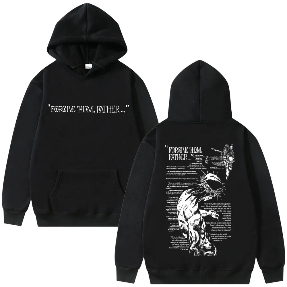Christian Religious Jesus Forgive Them Father Graphic Hoodie Men Women Gothic Rock Harajuku Sweatshirt Man Oversized Streetwear