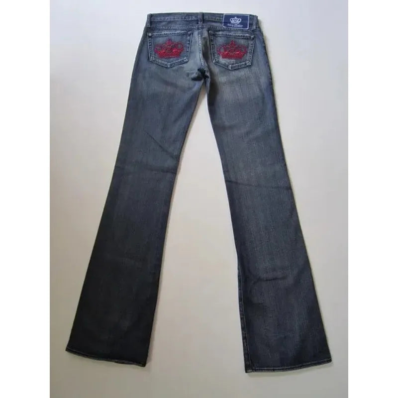 Harajuku Y2K crown graphic pocket embroidery high quality oversized jeans for women high street slim sexy casual straight pants
