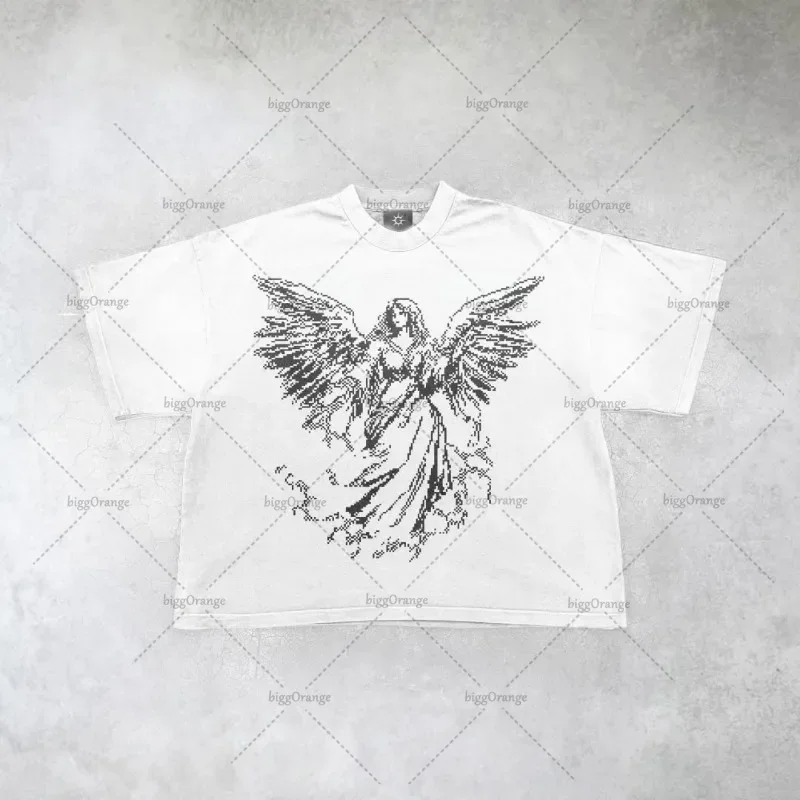 New Gothic Streetwear Harajuku Retro Graphic Top Y2K Punk Anime Print Oversized T-Shirt Men Fashion Cotton Casual Short Sleeve