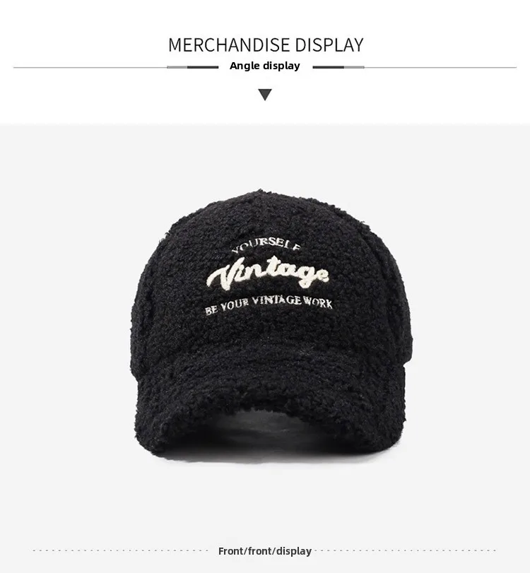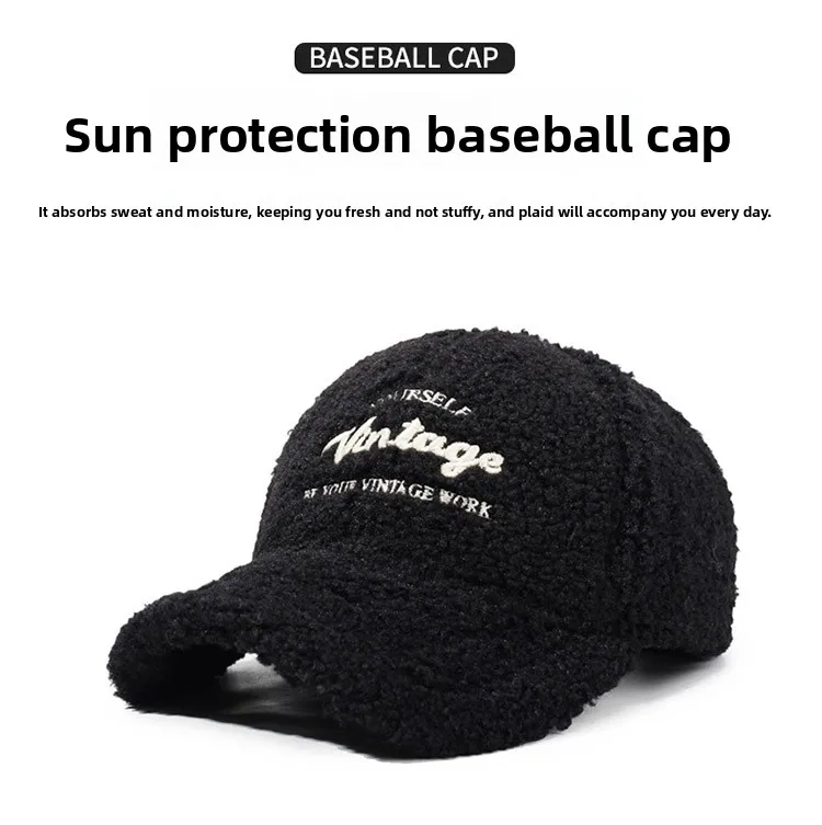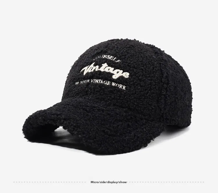 Warmth Embroidered Letter Lamb Fur Baseball Cap Women's Versatile Small Face Duckbill Cap Autumn Winter New Style Fashionable...