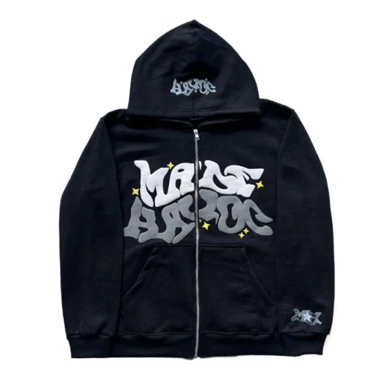 Zipper hooded sweatshirt with retro American letters and stars suitable for men and women jacket autumn d winter cardigan