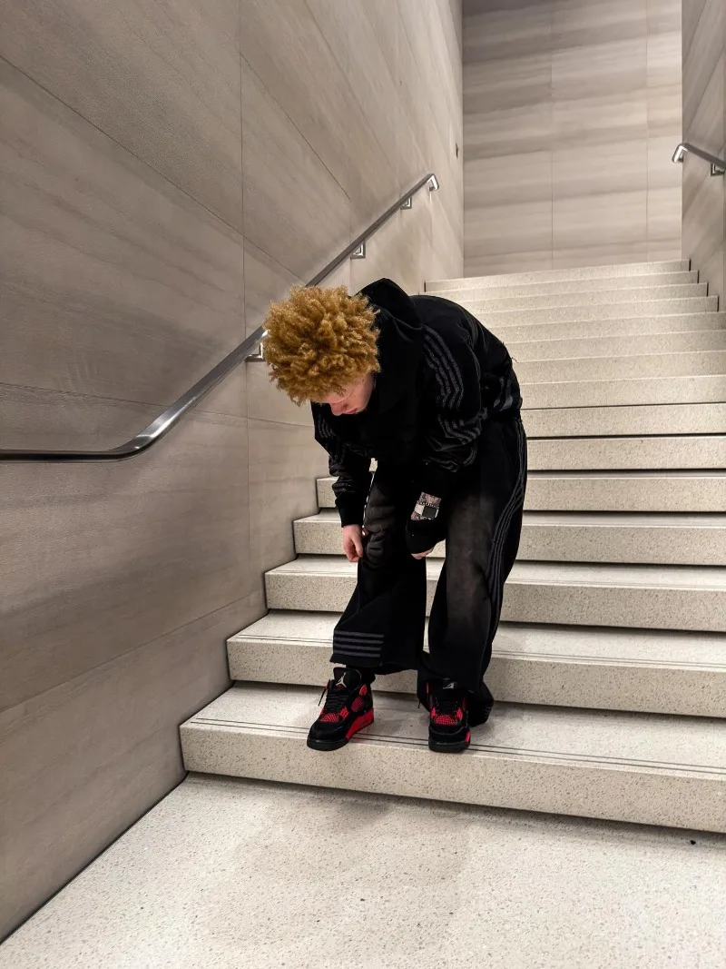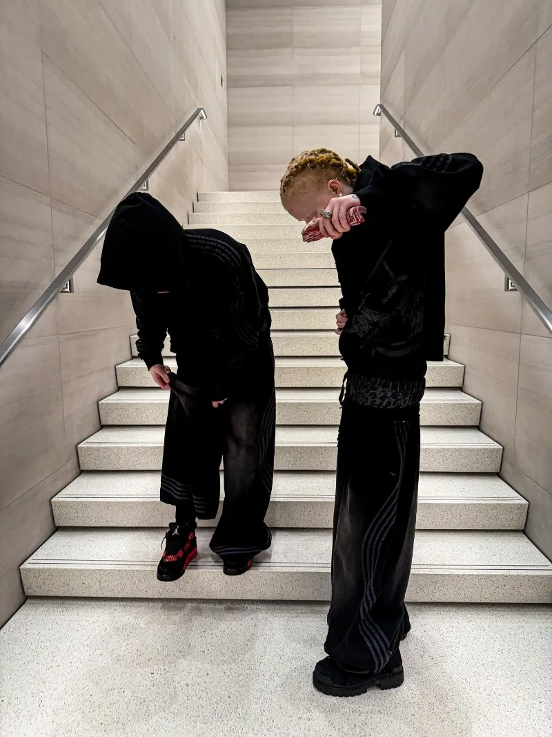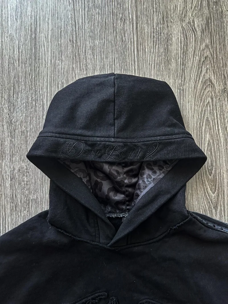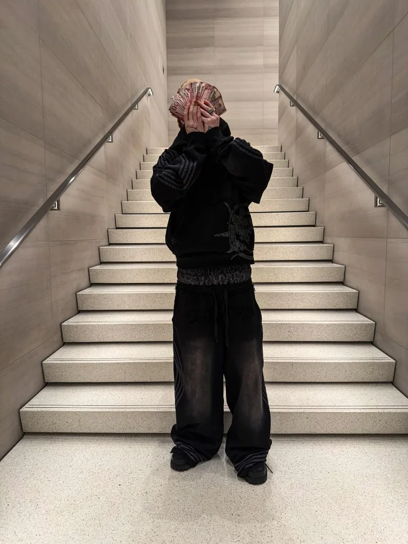 Washed Embroidered Striped Splicing Men Suit American Retro Double Waist Couple Wide Leg Pants Casual High Street Fashion Hoodie